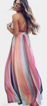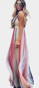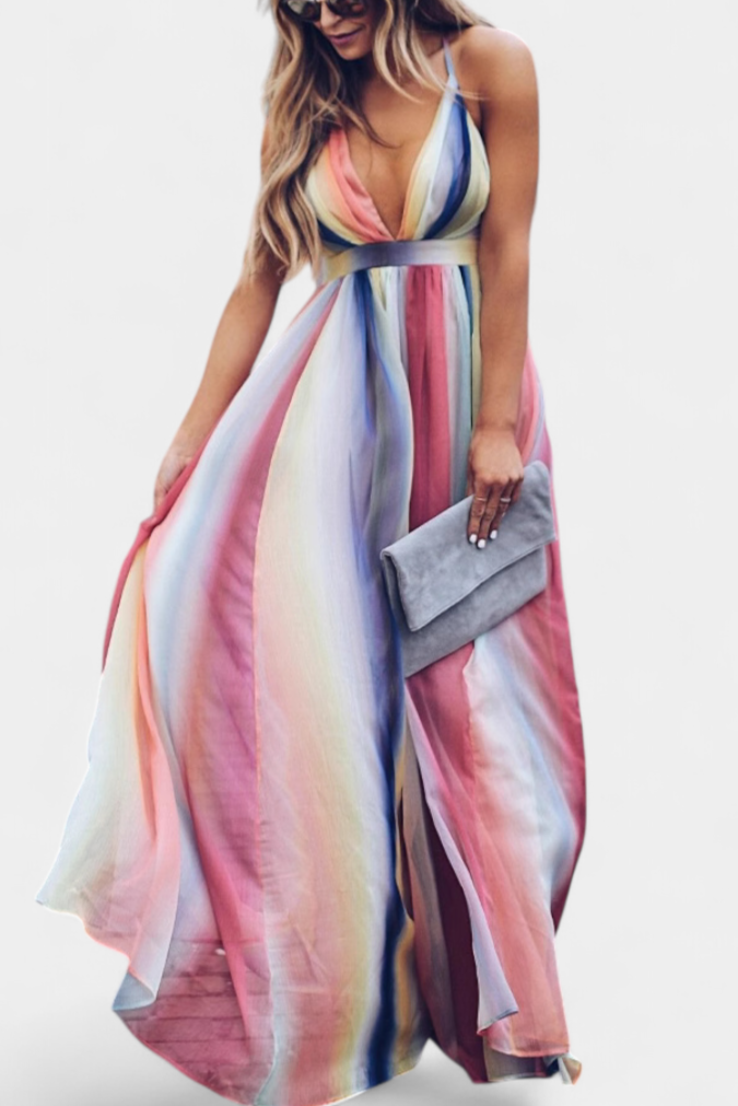 Gretchen Robe Maxi à Rayures Multicolores et Décolleté en V