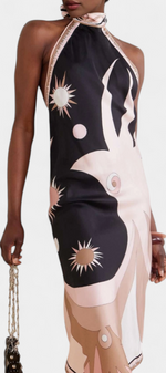 Art en mouvement avec une touche estivale et sophistiquée. La robe Rosenda se distingue par son imprimé abstrait et une silhouette midi fluide qui allie fraîcheur et style. Son dos nu et l'ourlet asymétrique apportent une touche moderne et sensuelle sans effort.