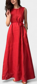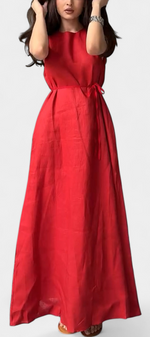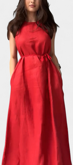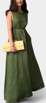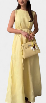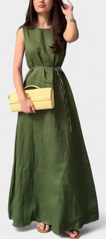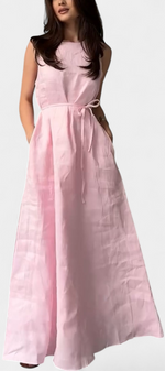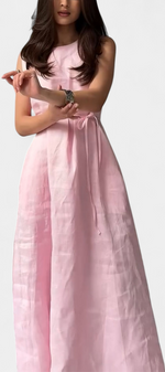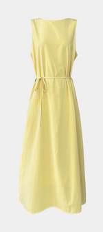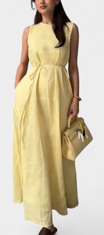 La fraîcheur naturelle et l'élégance simple définissent la robe Rosetta. Avec une coupe légère et un design sans manches avec un col rond, cette robe en A offre un ajustement confortable et flatteur. Le nœud fin à la taille ajoute une touche subtile et décontractée, idéale pour les journées chaudes et la simplicité avec style.