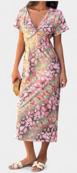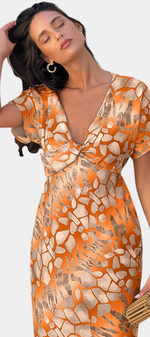 Originale, fraîche et pleine de caractère, la robe Triana canalise une élégance créative idéale pour l'été. Son décolleté en V allonge visuellement la silhouette, tandis que l'imprimé abstrait transforme chaque pas en une déclaration de style moderne.