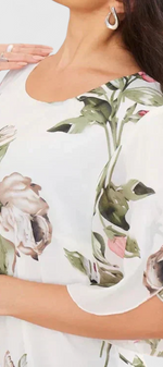 Légèreté éthérée avec un design qui embrasse la féminité avec douceur et fraîcheur. La robe Tameka combine la fluidité de la gaze avec un imprimé de pétales subtils, créant une silhouette romantique et enveloppante. Ses manches transparentes et son décolleté croisé ajoutent une touche délicate qui se déplace avec grâce et naturel.