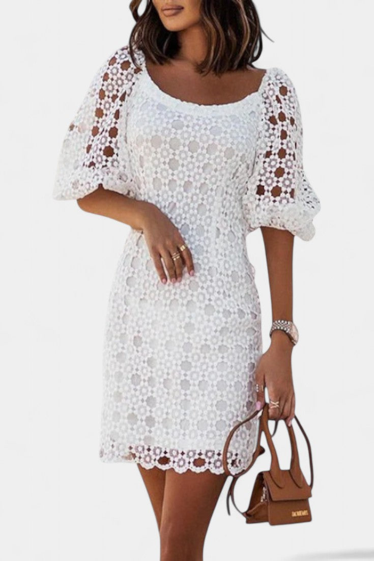 Isabella Robe Ajustée en Dentelle Florale à Décolleté en Cœur et Manches Bouffantes