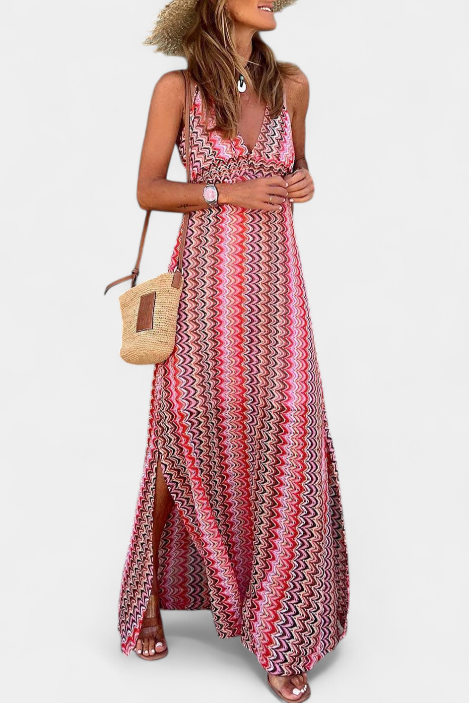 Francia Robe en Tricot Multicolore à Décolleté V et Bretelles Croisées