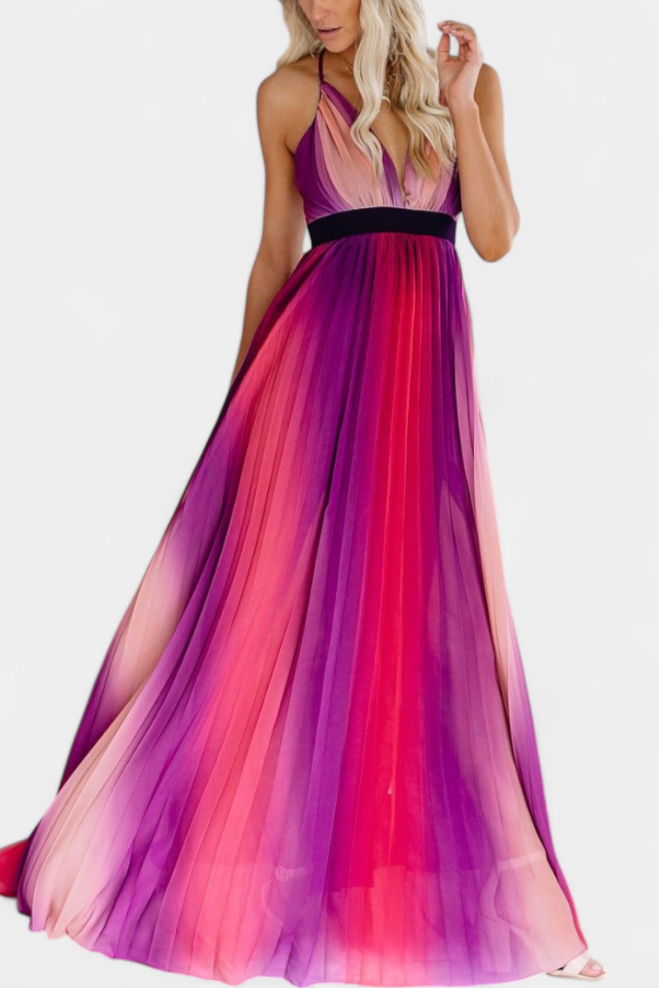 Lexa Robe Longue en Chiffon Imprimé Floral dos Nu