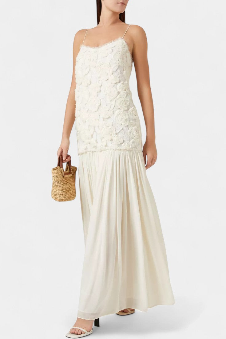 Sephina Robe Longue à Épaules Dénudées et Appliqués Floraux en Relief
