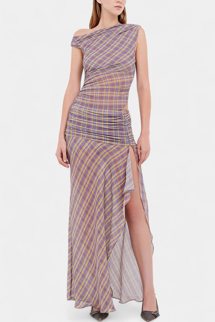 Jolanda Robe Longue Asymétrique à Une Épaule et Taille Cintrée