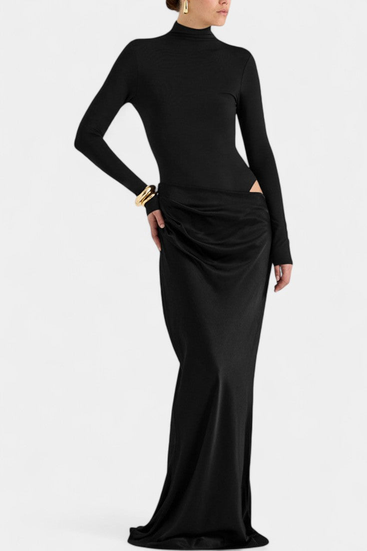 Tierra Robe Longue à Manches Longues et Découpe à la Taille