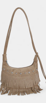 Nayden Sac en Daim Marron à Franges et Détails Métalliques