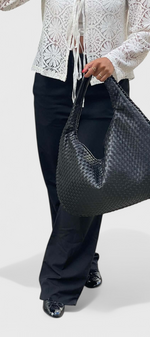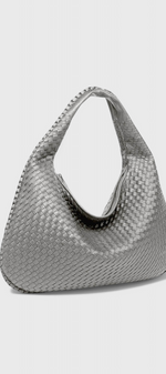 Tilly Sac à Bandoulière en Cuir Vegan Tressé et Détails Argentés