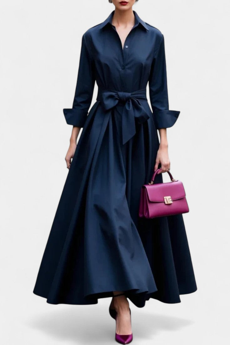 Lioren Robe Chemise en Sergé de Coton avec Nœud à la Taille