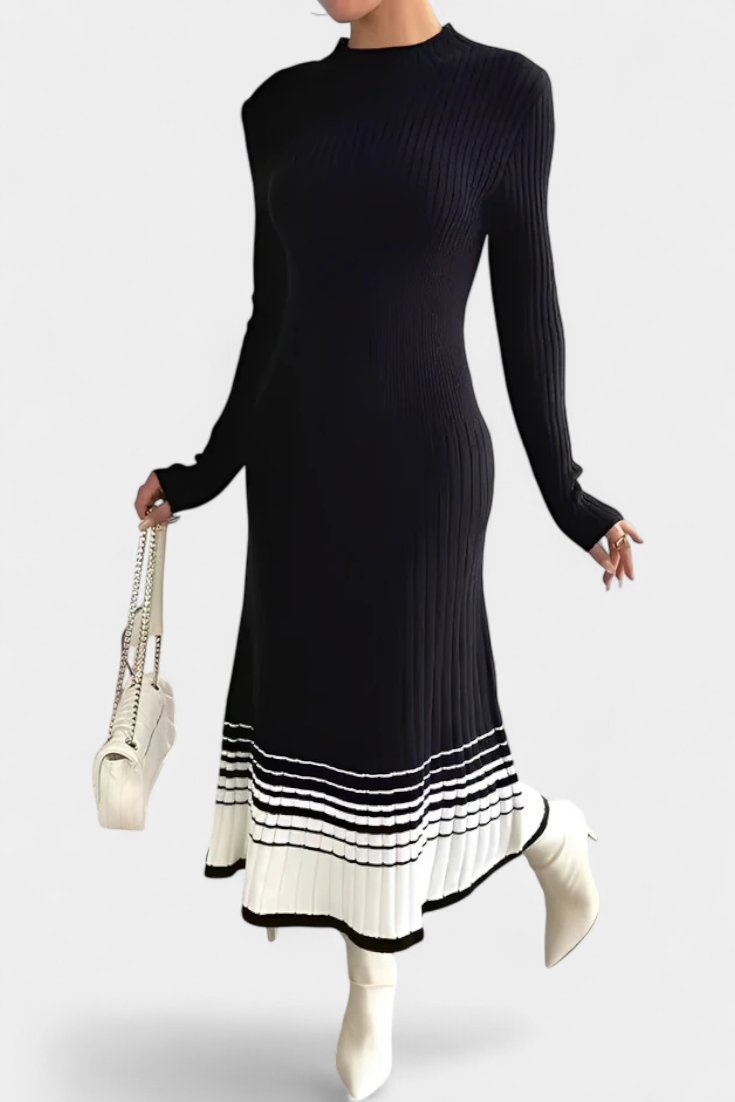 Sidonie Ensemble Robe Pull Midi Bicolore à Manches Longues
