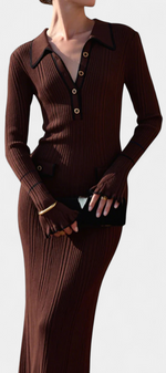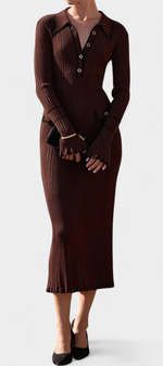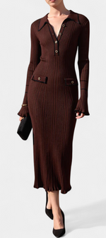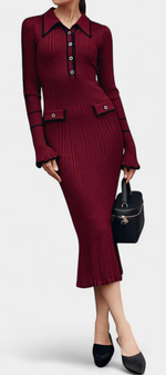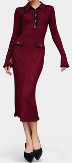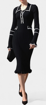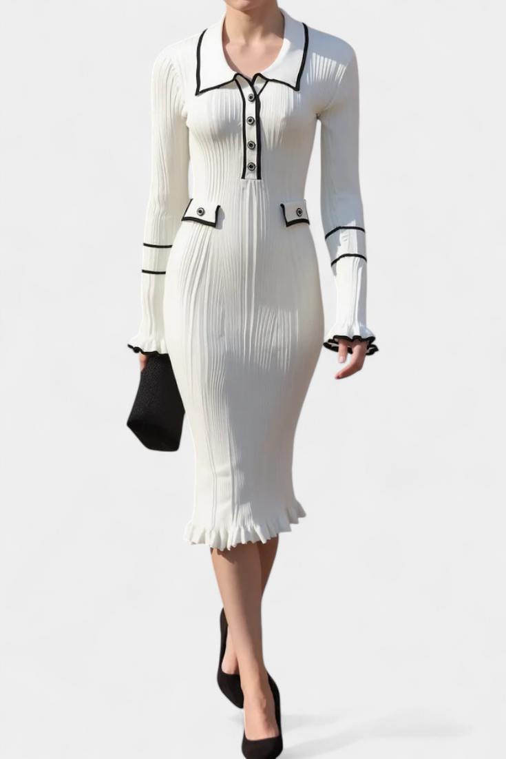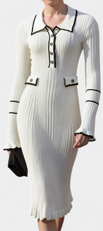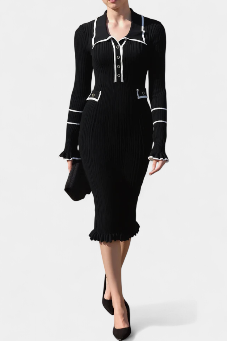 Jamila Robe en Tricot à Col Polo et Volants Élégants