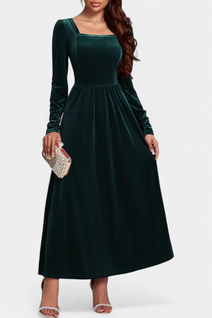 Stéphanie Robe Longue en Velours à Dos Nu et Col Carré