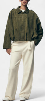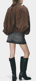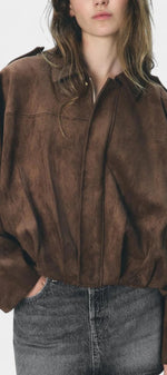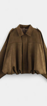 Monnie Bomber Oversize en Suède à Épaules Structurées