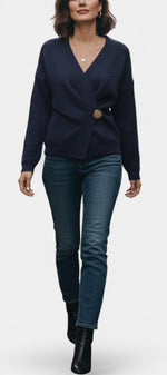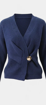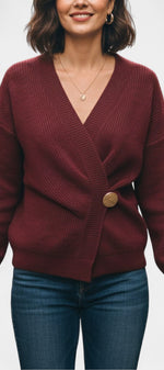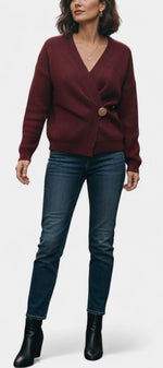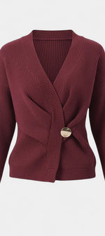 Céline Cardigan en Tricot Côtelé Style Wrap à Col en V et Ourlet Asymétrique