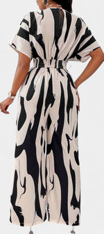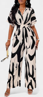 Audacieuse mais raffinée, Zahara est la combinaison parfaite pour ceux qui recherchent un style sans effort avec une touche de distinction. Son décolleté en V flatteur et sa taille ajustée mettent en valeur la silhouette, tandis que la jambe large apporte fluidité et élégance. Le motif abstrait vibrant ajoute une touche contemporaine et pleine d'énergie, idéale pour se démarquer en toute occasion.