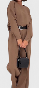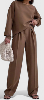 Frais, tranquille et indéniablement élégant—l'Ensemble Elaya allie une coupe décontractée à une touche de sophistication. Avec un haut à manches longues doux et un pantalon à jambes larges, c'est le genre de tenue sans effort dans laquelle vous voudrez vivre, des matins paisibles aux promenades au coucher du soleil.