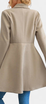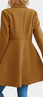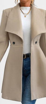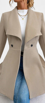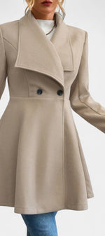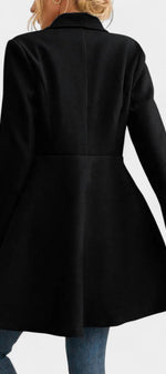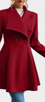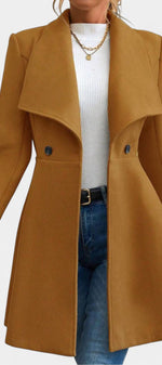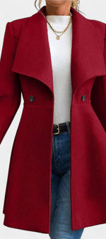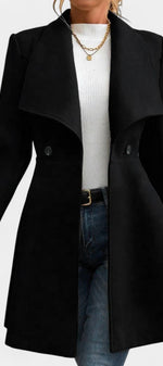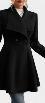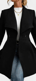 Floriane associe élégance classique et féminité affirmée. Confectionné en polyester doux et structuré, ce manteau se distingue par sa coupe péplum qui souligne délicatement la taille et apporte du mouvement à la silhouette. Son double boutonnage et son col à revers ajoutent une touche intemporelle, parfaite pour la saison froide.