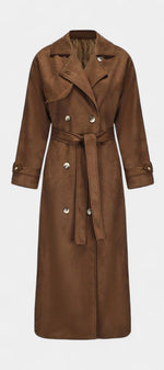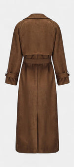 Leelie réinvente le trench classique avec une touche de modernité et de douceur. Confectionné en suède synthétique raffiné, il séduit par sa texture veloutée et sa silhouette fluide, marquée à la taille par une ceinture ajustable. Sa coupe maxi et son allure élégante en font une pièce polyvalente, idéale pour sublimer aussi bien les tenues décontractées que les looks de soirée.