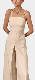 Une proposition sophistiquée qui allie confort et style raffiné en une seule pièce. Lindsey met en valeur la silhouette avec sa taille ajustée et son nœud, tandis que la silhouette à jambes larges apporte du mouvement et allonge visuellement les jambes. Son design à bretelles et sa finition premium en font un incontournable polyvalent pour des looks à la fois décontractés et élégants.