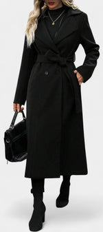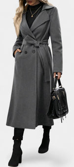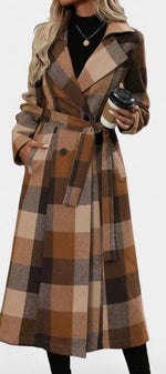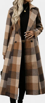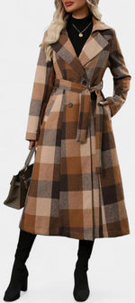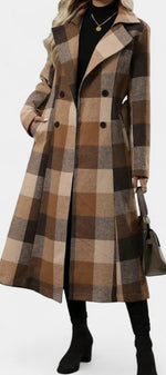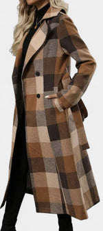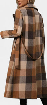 Mélissandre Manteau Long à Carreaux à Double Boutonnage et Col à Revers