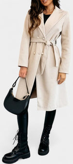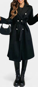 Miguelle incarne la modernité dans sa forme la plus élégante. Confectionné dans un tissu doux et structuré, ce manteau à double boutonnage se distingue par sa ceinture à nouer qui souligne la taille avec raffinement. Sa coupe régulière et ses manches longues en font une pièce parfaite pour la mi-saison comme pour l’hiver, alliant confort et allure sophistiquée.