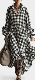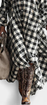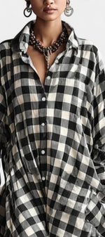 Jett Robe Chemise à Carreaux Noirs et Blancs et Coupe Fluide