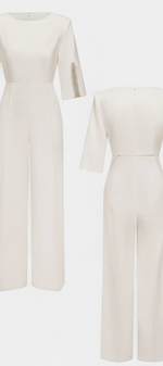 Minimaliste et sophistiqué, la combinaison Prim offre un style impeccable avec une silhouette aux lignes épurées et des détails luxueux. Il se distingue par sa coupe structurée, des manches mi-longues et des ouvertures ornées de délicats boutons en perles qui apportent une touche raffinée. Sa chute fluide allonge la silhouette tout en maintenant confort et élégance à chaque mouvement.