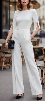 Prim Combinaison Élégante à Manches Trois-Quarts et Détails en Perles
