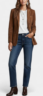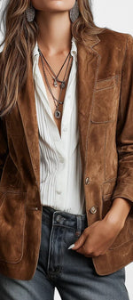Tanja incarne le charme du style rétro revisité avec une conscience moderne. Confectionnée en faux suède de haute qualité, elle séduit par ses coutures contrastées qui soulignent une silhouette classique et intemporelle. À la fois durable et élégante, cette veste allie raffinement vintage et modernité responsable, parfaite pour une allure affirmée et durable.