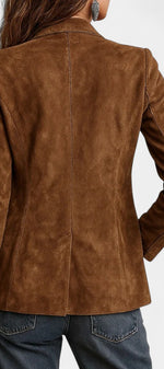 Tanja Veste en Suède Marron Vintage à Coutures Contrastées